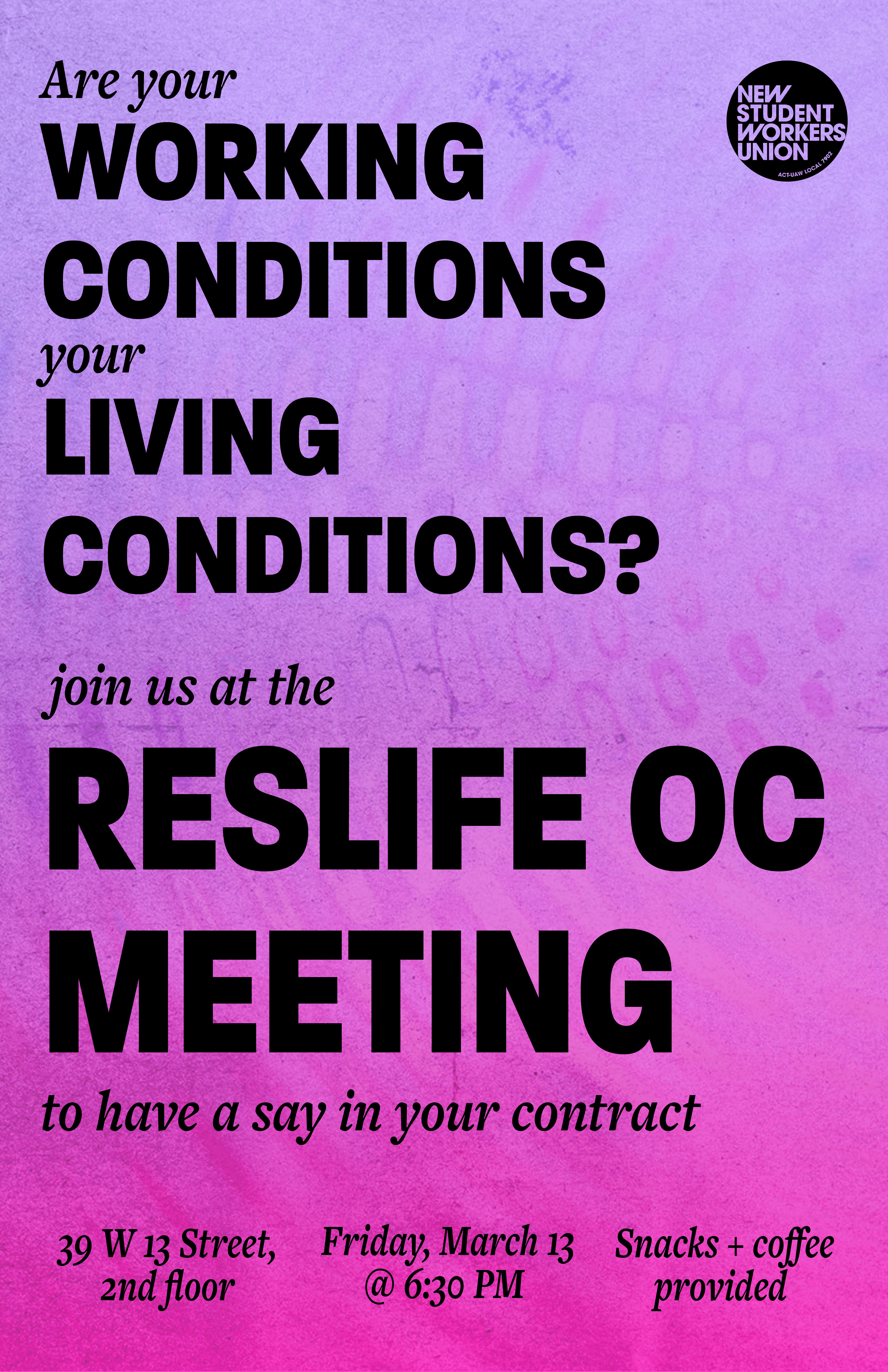 Flyer for New Student Workers Union