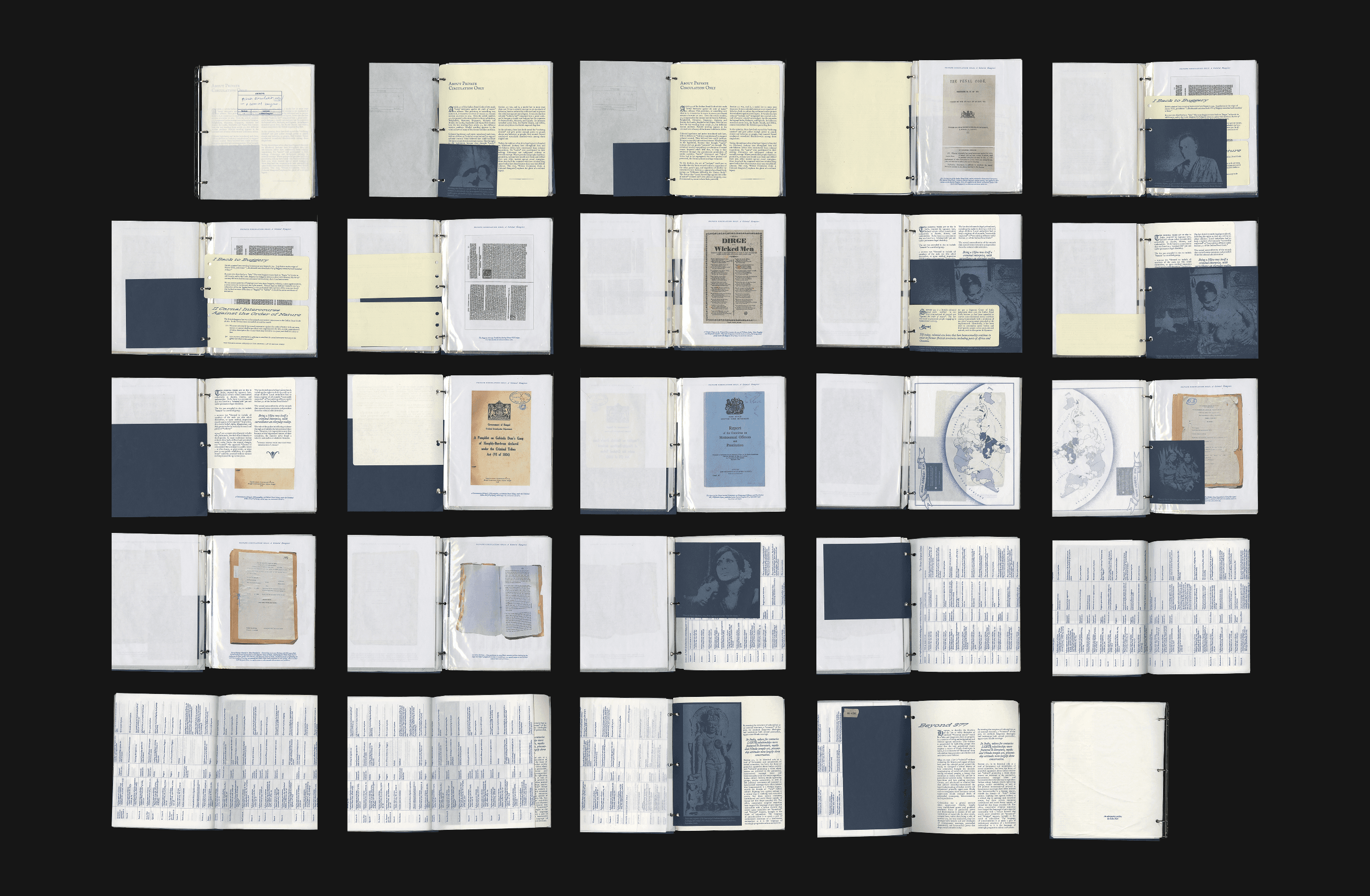 An archival and sociolegal research project mapping the pre- and post-colonial legacy of Section 377 of the Indian Penal Code. 'Private Circulation Only' takes the form of a modular zine to queer the archive and present a counterhistory of South Asian queer history.